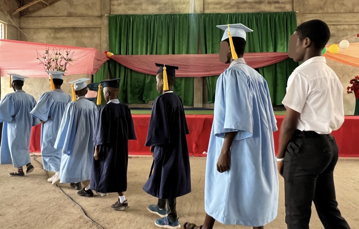 Für einen Moment habe ich mich gefühlt, wie in einem der amerikanischen High-School-Filme: ein feierlich geschmückter Raum, DJ und die Schüler/-innen der Abschlussklassen in Robe mit Hut. Ob gerade die jüngeren Kinder den Anlass der Festlichkeit überhaupt realisiert haben, war mir nicht ganz klar – ihren Spaß schienen sie aber gehabt zu haben. Neben der Zeugnisvergabe reichte das Programm von verschiedenen Choreographien über einzelne Songs bis hin zu einem Theaterstück. Das Highlight: Die Fashion Show der Basic 1. Wie echte Profis sind die Schüler/-innen zwischen den Sitzreihen entlanggelaufen – immer mit dabei: Fotograf Nelson, der (610 Bilder später) vielleicht ein bisschen ZU motiviert gewesen ist.