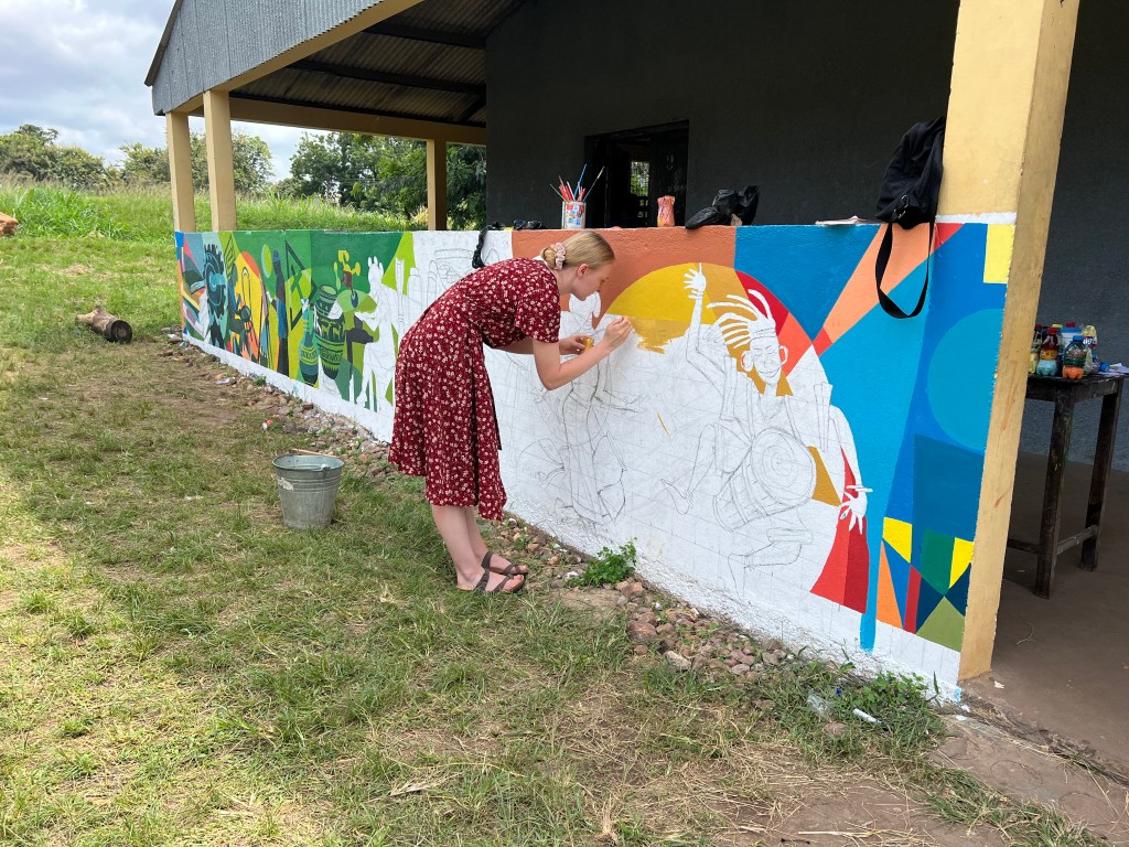 Neben den Pflichtfächern Mathe, Englisch, Sciens und Social Studies, wird eines von acht Profilen gewählt, das sich aus weiteren Fächern zusammensetzt. Auch ich durfte mir ein Profil aussuchen und bin nach dem Ausschlussprinzip (Mathe, Physik und Englisch sind eher nicht so mein Ding, auf Ewe kann ich mich gerade mal vorstellen und meine „Französischkenntnisse“ beschränken sich auf die Ausdrücke „Baguette“, „Croissant“ und „Bonne année“) bei „Visual Arts“ gelandet. So durfte ich in den vergangenen Wochen Unterrichtseindrücke aus verschiedenen Kunstkursen sammeln, darunter „General Knowledge in Art“ (allgemeines Kunstverständnis), „Jewellery“ (Schmuckkurs), „Sculpture“ (Skulpturenkurs) und „Picture Making“ (Variation aus Malen, Zeichnen, Fotografie, etc.) und mithelfen, die Wand vor dem Jewellery-Gebäude zu bemalen.
