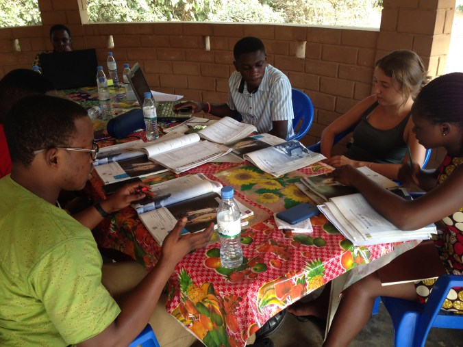 Das regelmäßige Deutsch lernen in den frühen Nachmittagsstunden mit der Unterstützung der deutschen Freiwilligen, damit die während des Seminars verpassten Stunden der Deutschkurse am Goethe Institut in Accra und Lomé ausgeglichen werden